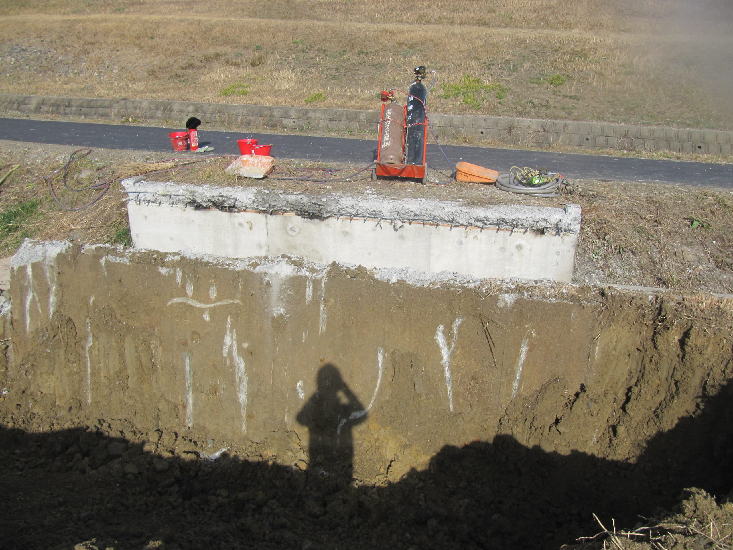 まず桁部分を撤去し、橋脚部分を掘り込んでいくと、想定以上に大きな基礎が現れました。