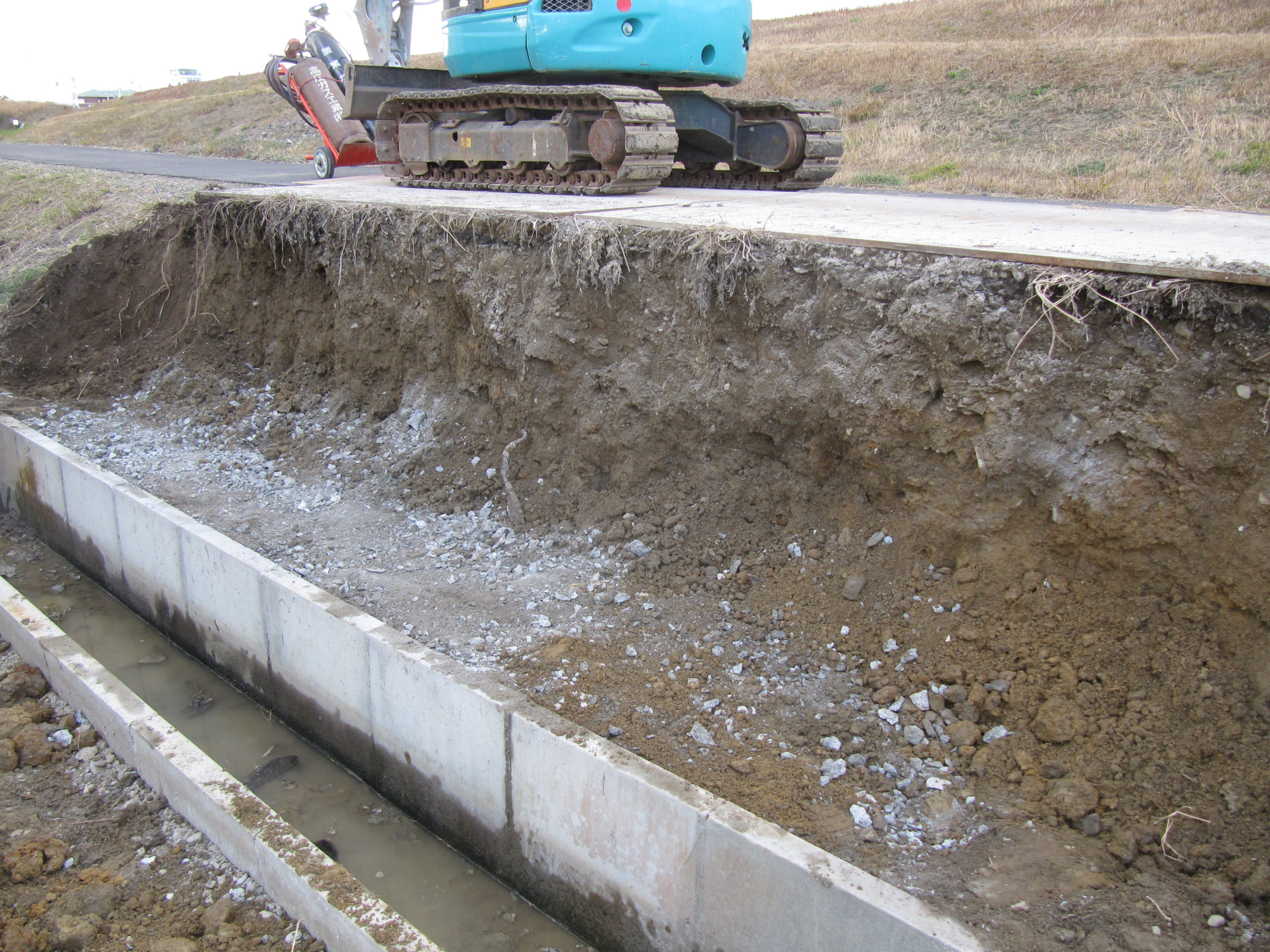 手前部分の基礎は、大型重機を使用して難なく撤去することができました。